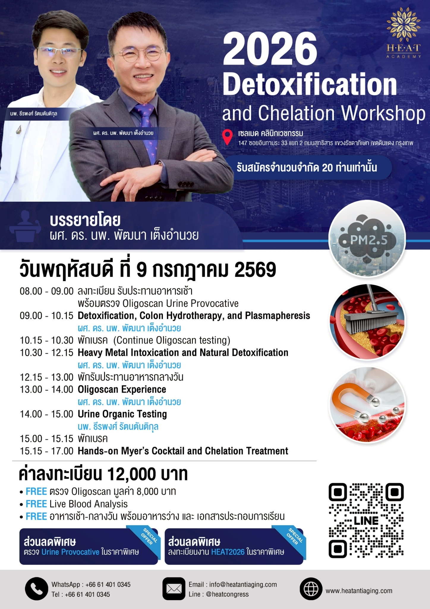 | 09:00 – 10:15 | Detoxification, Colon Hydrotherapy, and Plasmapheresis | ผศ. ดร. นพ. พัฒนา เต็งอำนวย |